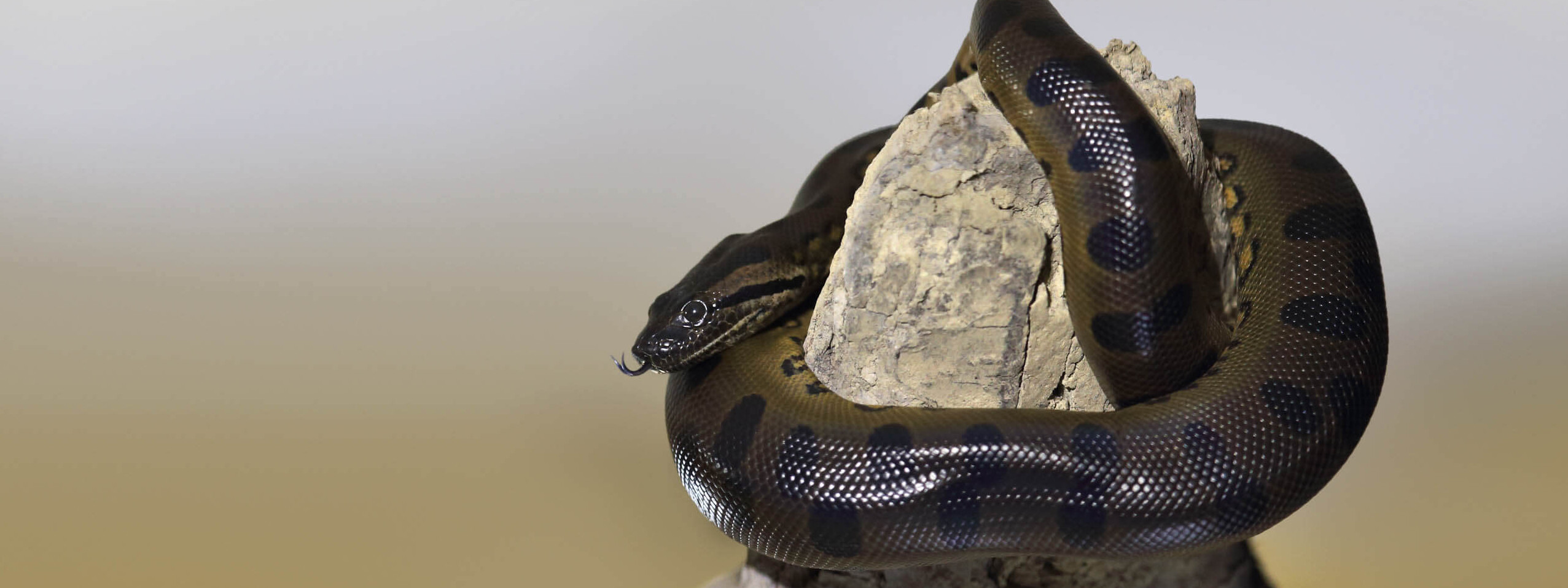 Die Grüne Anakonda wird auch Grosse Anakonda genannt – aus gutem Grund: Sie ist eine der grössten Schlangen der Welt, mit Ausnahmeexemplaren von bis zu 9 Metern Länge wahrscheinlich sogar die grösste. Diese riesigen Schlangen leben eng an das Wasser gebunden.